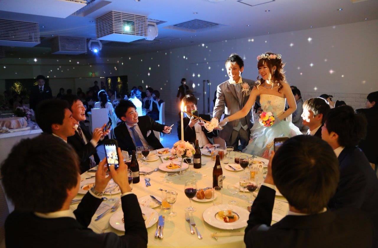 入場やケーキ入刀・キャンドルサービスなどのシーンでは会場内360度に映し出す映像演出を☆シーンごとに変わる映像演出にゲストからは驚きと拍手が!!