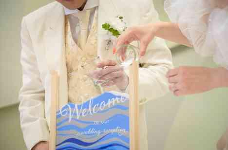 ゲストも一緒に参加できるサンドセレモニーやサイリウムを使ったドレス色当てクイズなど演出を多く取り入れました! 砂は一度混ざると二度ともとに戻すごとができないことから「これからひとつの家族として生きる」という意味を込めてサンドセレモニーを行いました。 結婚式後はインテリアとして飾れるのも嬉しいです!