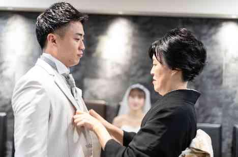 ご新郎様の挙式入場はお母様からのジャケットセレモニー、お父様からブートニアセレモニー「最後の身支度」と呼ばれるセレモニーを親御様のご協力のもとに行いました。お打ち合わせからお世話になった方々に感謝を伝えたいとおしゃっていたお二人。ゲストの皆様と笑顔でお話している幸せいっぱいのお二人がとても印象に残っていいます!