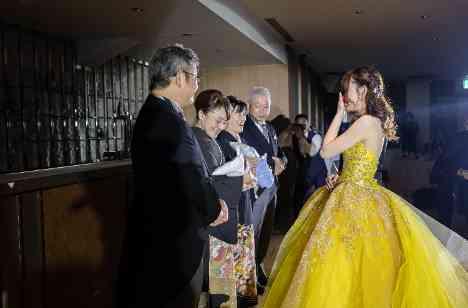 ご披露宴では様々な演出で皆様との時間を過ごされたお二人。特に盛り上がりを見せたのは、お色直し入場!カラードレスの色当てクイズをおこなっていて、ゲストの皆様もペンライトで大盛り上がり! 階段を下りながら、ゲストの皆さんの歓声と拍手が響き渡り、その華やかな光景に会場全体が祝福の気持ちで満たされました。