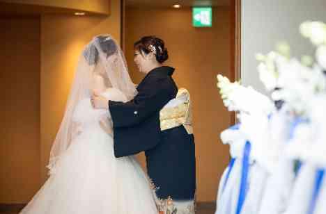 お母様から花嫁へ、最後の身支度としてベールをおろしていただく「ベールダウン」 「いってらっしゃい」「幸せになってね」そんな気持ちがあふれる感動の瞬間! 親子の絆を感じられるシーンは、会場中が優しい空気に包まれます また、ご新婦様だけだはなくご新郎様もジャケットセレモニーを! 最後のご支度をご両親に手伝っていただき、心温まるセレモニーになりました