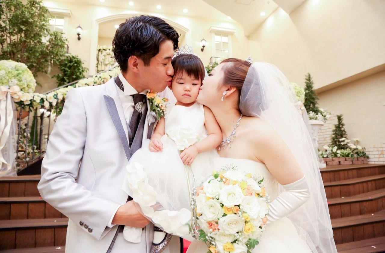 当日はお二人のお子様もリングガールとして大活躍!!あまりの可愛さにゲストも笑顔が溢れ、アットホームな挙式に♪自然光が差し込む明るい教会だから、ゲストがお持ちのデジカメやスマホでも綺麗に写真が撮れるところもポイント!!挙式後は全天候型の室内ガーデンでアフターセレモニー♪全天候型なので真夏のこの日も、暑さや紫外線などを気にすることなく、ゲストの皆様に快適にお過ごしいただくことが出来ました!!