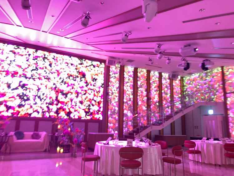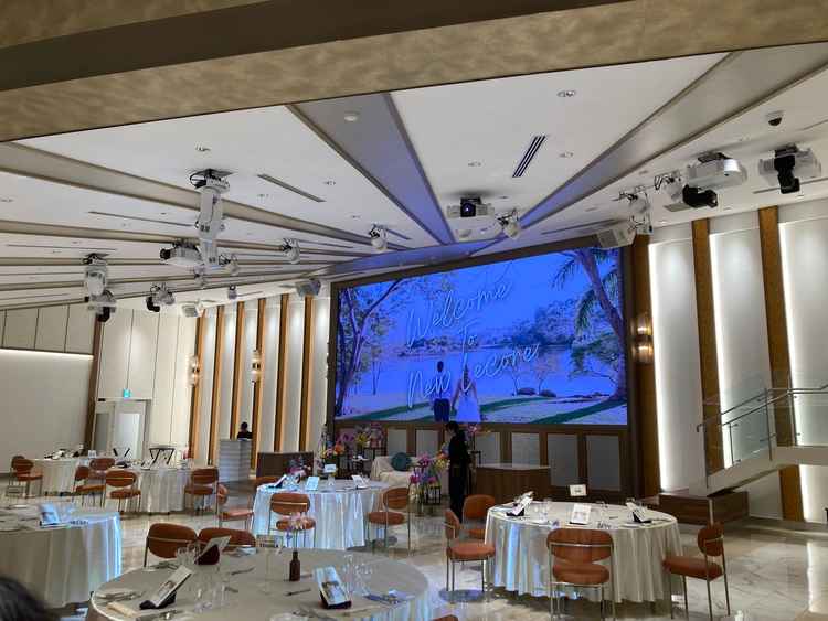 披露宴会場に大きい360度見渡せるディスプレイがあり、とても新鮮で良いなと思いました。また装飾などもいろいろできそうで良いなと思いました。
