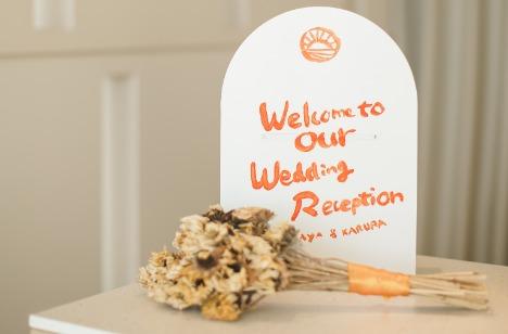 コンセプトは【御言葉】。ひとりひとりのゲストがおふたりにとってかけがえのない、今までも、これからもおふたりの時間制にとって、欠かすことのできない大切な方々だから。感謝を伝える機会にしたい。そんな想いの詰まったコンセプト。ウエディングアイテムは新婦さまがひとつひとつ想いを込めてデザインからされたこだわりのアイテム。コンセプトカラーはオレンジ&グリーンでこだわりの空間に。