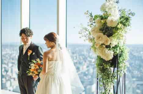 名古屋駅直結、地上200m。名古屋で一番高い場所にある天空のチャペル’スカイホールそら’。お父様が牧師をつとめ、ゲストに見守られて過ごした特別な時間。結婚式がおふたりにとって、ご家族にとって、そして、ゲストにとってどんな時間になるのか。それぞれの想いが重なりあい、かけがえのない時間となり、忘れることのない、景色が、そして結婚式をやる意味がそこにはある。この場所を選んだことも、おふたりらしさ。