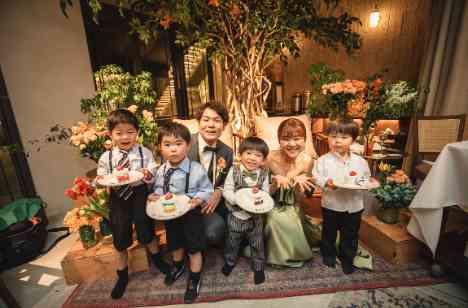 ゆったりとゲストと過ごしたい!感謝を伝えたい、その想いが強かったので、大きなイベントはせず、ゲストのテーブルを回ったり、ゲストにメインテーブルに来てもらってお話してお写真をとったり、ゆったりとした時間を過ごされました!お子様もたくさん来てくれていたので、お誕生日も併せてみんなでお祝い。一人一人にケーキとアイシングクッキーを用意して。ちょっぴり緊張していたお子様も笑顔でハイチーズ。