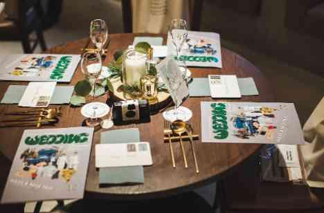 おふたりのこだわりのコーディネイトは、クリスマスシーズンを感じることのできるような、ワクワクする空間を感じていただくこと。一つ一つのアイテムにもこだわって、ゲストと一緒に楽しめるような時間に。一択ずつにインスタントカメラもセッティングして、ゲストに自由にとってもらい、あとからの現像するのも楽しみがまたひとつプラスに。