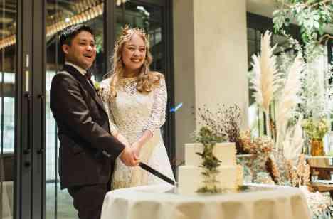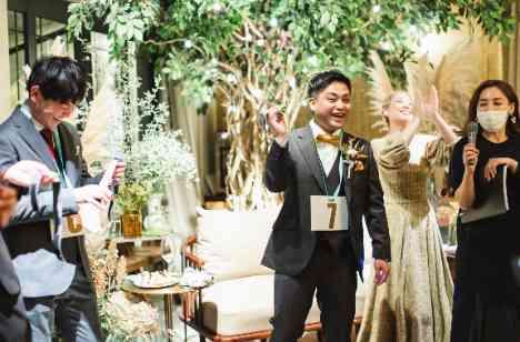 固く、かしこまった空間にはしたくない、リラックスして、楽しんでもらえるような時間を一緒に過ごしていただきたい。メインテーブルで写真を撮影したり、ゲストのテーブルにおふたりが回って、みんなとゆったりお話ししたり、特別だけと、当たり前の時間を大切に過ごされました。友人が余興で盛り上げてくれて、楽しい時間に。