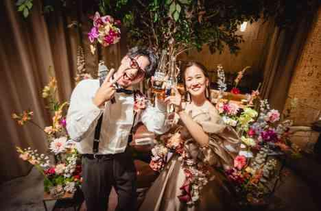 普段からお花をつくっていらっしゃる新婦様。ご自身で作ったお花とフラワーコーディネイターを打ち合わせを何度も重ね、オリジナルのコーディネイト空間に。 大好きなお花に囲まれた空間は、ゲストにとってもおふたりのこだわりを感じてもらえるポイントに! エントランスには前撮りフォトを展示して、ウエルカム空間も演出されました。