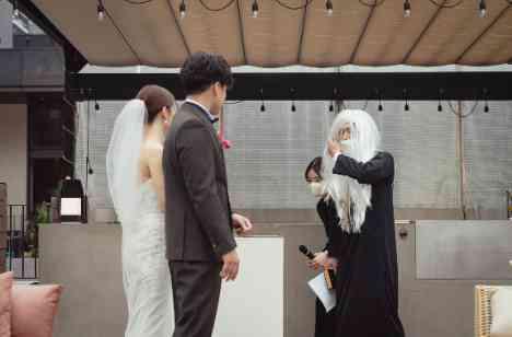 グリリアパージナの屋上テラス「THE ROOF」でのウェディングセレモニー。人前式のスタイルで、誓いの言葉は大切な友人が登場し、おふたりに投げかけるスタイルに!コンセプトのWOW!を様々なシーンで取り入れられました。挙式の後半は、本来パーティのエンディングで行う親御様への想いを伝えられるシーンも入れて、パーティを笑顔で過ごすためにも、しっかりと挙式で手紙をおふたりとも読み、想いを届けられました。