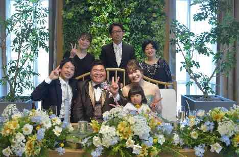 披露宴はとても温かい雰囲気でスタートしました 会場はナチュラルなグリーンが沢山ほどこされていて、さらにお二人が選ばれた披露宴会場のお花がとっても素敵でした☆ グリーン・イエロー・ブルーの爽やかなコーディネートがお写真にも映えていました ゲストの皆様もお二人のお近くで沢山お写真を残してくださっている姿がとても印象的でした