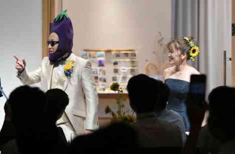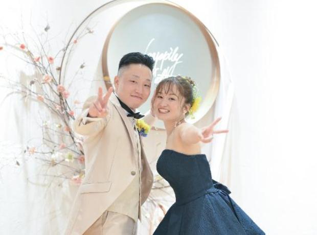新郎様のお好きなお笑い芸人と新婦様のお好きなアイドルを当てるクイズを実施。お色直し入場で正解が明らかとなるため、ご挙式前に投票をしてくださったゲストの方もドキドキの瞬間・・・。なんと新郎様はお好きな芸人さんの特徴であるなすびの被り物を被って登場!新婦様の手には推しのアイドルのうちわが・・・!扉が開いた答え合わせの瞬間は大きな歓声が沸き起こり、おふたりの「好き」が彩った演出でした。