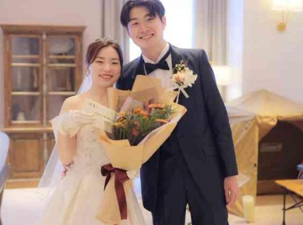 ご新郎様のご趣味であるキャンプグッズが並べられたホワイエスペースはまるでキャンプ場!本格的なキャンプグッズの椅子やテントにはゲストが集まり、お二人と一緒に写真を撮るゲストの方や、少し休憩タイム~とゆっくり休んでいる方々が。ゲストの皆様が思いっきり楽しんでいる様子が目に飛び込んできました!ホワイエスペースでのお写真もたくさん残すことができたご披露宴でした。