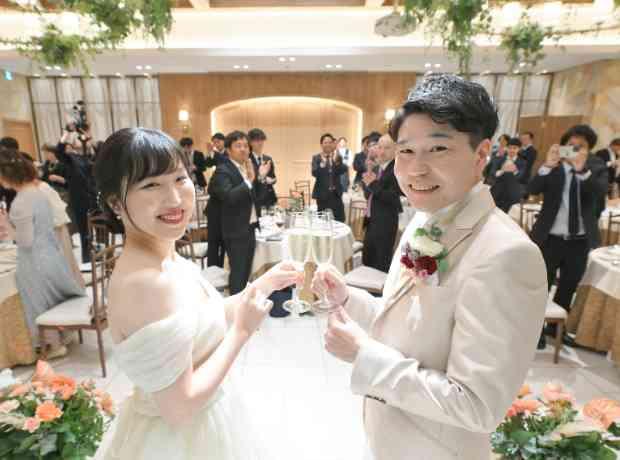 アットーホームな1日にしたいとお話されていたYukiさんとChitoseさん。お越しいただく皆様との交流の時間を大切にするために、自ら会場を盛り上げる演出を組み込んだり、歓談の時間にはゲストの方のテーブルを順番にまわりながら写真を撮るなど、全員との距離感が近くなれるようにいろいろと工夫をされました。