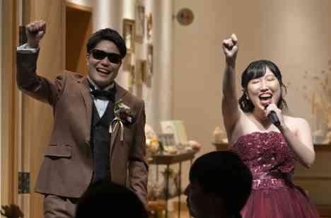 深いブラウンのタキシードとワインレッドのカラードレスに身を包み、装い新たにご入場されたYukiさんとChitoseさんはおふたりで歌ってご登場!マイクを持ったおふたりに会場の皆様からもわぁっと歓声が上がります。サングラスをかけたYukiさんは、手拍子でより会場を盛り上げながらChitoseさんをエスコートし、ゲスト皆様との一体感を感じることができました!
