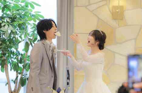 披露宴はゲストの皆様とたくさんお話しする時間を…と歓談の時間をたっぷりと。乾杯後はそんなMitsukiさんとSakiさんを囲むように次々とゲストの方がお祝いに集まり、ソファー席の高砂周辺はとても賑やかでした♡そしてケーキセレモニーでは、多くの方々少しでも近くで写真を撮ろうと大集合♪新婦Sakiさんが新郎MitsukiさんにBigスプーンでケーキを食べさせるシーンも皆さんで盛り上げてくれました!