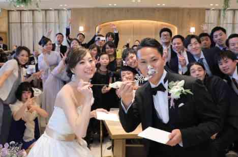 おふたりがこだわったウエディングケーキに皆様も大興奮♪ DaikiさんとCocoroさんは同時にファーストバイト! 勢いよくケーキを口へと運び、クリームまみれのDaikiさんと 可愛らしく一口サイズをほおばるCocoroさんに、ゲストカメラマンは大盛り上がり♡♡