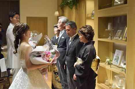 結婚式の一番感動する演出です。 これまでお世話になった親御様に感謝の気持ちを込めた お手紙を朗読しそののち花束と記念品をご贈呈していただきます。 このシーンは親御様はもちろんのことゲストの皆様も感動に包まれるシーンです。 結婚式には欠かすことのない演出の1つではありますし、親御様にとって記念品は一生の宝物になります。