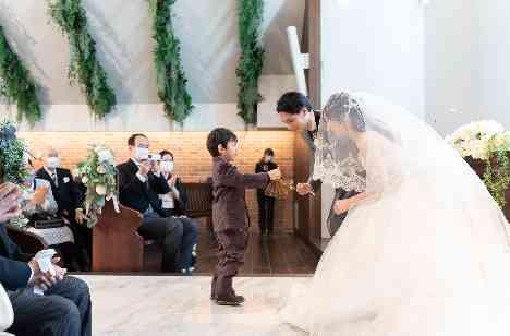 挙式のスタイルは人前式を選ばれたおふたり。お子様ゲストにも当日楽しんで欲しいと新婦様の姪っ子ちゃんや甥っ子くんに「フラワーガール」や「リングボーイ」を頼まれました。身近なご親族様だけでのご結婚式だからこそ、笑顔がこぼれるシーンとなりました。挙式後半はご親族にサプライズで握手のセレモニーも実施をされ、特別な日にちに感謝のお気持ちを伝えられました。