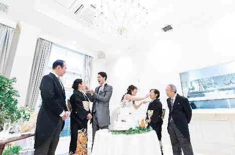 パーティーが始まり、ウェディングケーキ入刀!ここでおふたりはドリップケーキをされました!その後おふたりによる「ファーストバイト」その後、ご両家の親御様をお呼びして「サンクスバイト」をおふたりから!!親御様も恥ずかし気にしながらとても嬉しそうなお顔を見せてくださいました!親御様へ感謝を伝えるということを大切にされていたおふたりならではの伝え方だったのではないでしょうか。