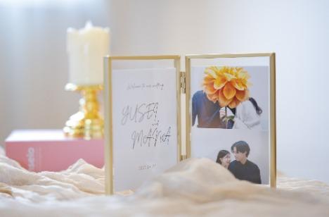 会場にご見学をされた日からお話の中でお二人がお付き合いをされた時からお二人の事をご存じなご友人様が多い為ご友人様やゲストの方皆様とわいわい楽しみたいと笑顔で話してくださったおふたり。ゲストの方がお待ちいただく待合室には皆様に楽しんでいただけるようお二人がご準備をしたお写真やグッズで会場に皆様をお出迎えします。