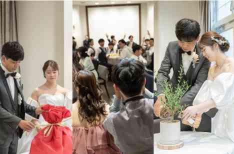 -おふたりのルーツを象徴するフライドチキン- ラッピングを開封するワクワク感をゲストの方と楽しみ ドリップソースの香りの中出逢った頃を想い出しながらファーストバイト -ゲストの方とカタチに残す植樹の儀- おふたりがお選びになった“夫婦の樹”とも言われるオリーブにご両家の想いが込められた水合わせの儀をして完成! お色直し後はゲストの方とのお写真撮影やソファに腰かけながら歓談を楽しまれました