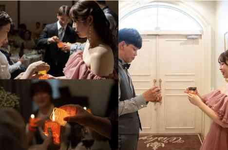 代表の方へ贈ったおふたりからの種火が1人また1人と波紋のように広がり会場がキャンドルの灯りで満たされあたたかい空間に そして蓋をするとおふたりからの手書きメッセージが浮かぶ 驚き 嬉しさ 感動...1人ひとりの想いが溢れ出しました もちろんお互いへもメッセージをご用意いただきおふたりだけの空間で交換というDirectorからの提案 ベンチに腰掛けたあの日のように想いを受け取り合いました