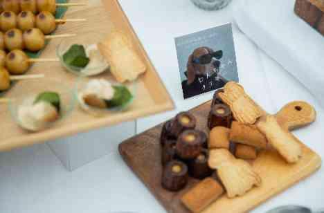 新郎様のご実家には大好きなワンちゃんが。挙式ではリングドッグで大活躍。パーティーの後半ではおふたりからゲストの皆さまへデザートビュッフェのおもてなしをしました。ビュッフェの中を覗いてみると愛犬をイメージしたクッキーが。パティシエが特別にご用意いたしました。ガーデンで行ったデザートビュッフェはワンちゃんもおふたりもそしてゲストの皆さまも楽しめる演出となりました。