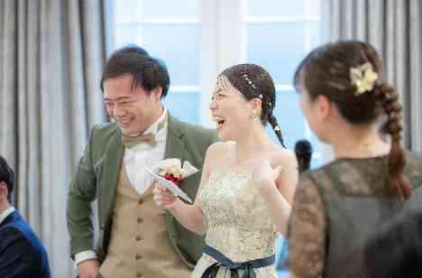 ゲストもみんなで参加しながら楽しみたいとのことでおふたりのファーストバイトの後はサプライズバイトを行いました。おふたりそれぞれ抽選箱をご用意され選ばれたおひとりにサプライズでウェディングケーキをおふたりからプレゼントしました。選ばれたご親族様とご友人の方はあまりない体験にすごく楽しまれていました。