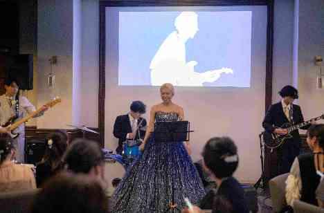 披露宴のクライマックスで叶えられられたおふたり念願の特別なライブ。 これまでたいせつにされてきた音楽と想いを ゲストへまっすぐ届ける時間となりました。 笑顔でエールを送られる方 思わず涙を流しながら見守られる方 それぞれの想いがかさなり合い 会場全体がひとつになるかけがえのない瞬間となりました。