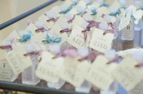 コロナ渦でのご結婚式。おふたりは当日お越しくださるのゲストに安心して過ごして頂ける対策を考えてご準備を行われました!貸切邸宅内のウェルカムスペースには当日だけでなくご結婚式の後も使えるものをとゲストの皆様のお名前付きのアルコール消毒をプレゼント☆ゲストの皆様もご自身のお名前を探しながら当日しっかりご使用頂いておりました。