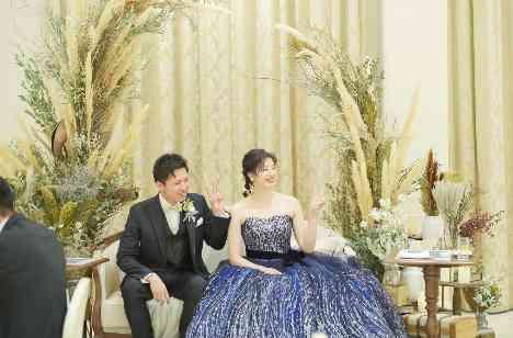パーティーの後半はゲストの皆様とお写真を撮るお時間を長めにとられたおふたり。お色直しのご入場の後に、おふたりが各テーブルを回り「各卓ラウンド」をされるだけでなく、ガーデンでデザートブッフェをしながらお写真タイムもご用意をされました☆演出を沢山入れるより大切なゲストお一人お一人とお話しする時間やお写真を撮るお時間を大切にされたおふたりでした。