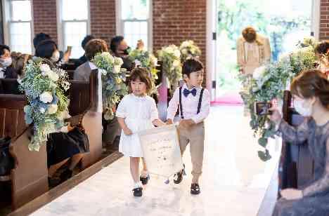 フラッグガール&ボーイやリングボーイをお子様ゲストにも任命をされました。フラッグには「カメラの準備はOK?!」という文字が!「可愛い!」と盛り上がりと共にご新郎様のご入場!アットホームな雰囲気で挙式は進みました!アフターセレモニーはフラワーシャワー、その後女性全員へ向けてブーケトス!ご新郎様からはご友人様へ「バナナ」をプレゼントされましたよ!!和やかな雰囲気のままパーティー会場へご移動頂きました。