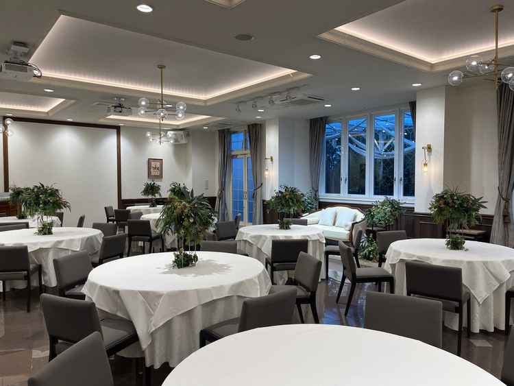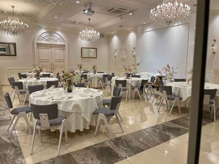 披露宴会場二つのうち、ブラウン基調の方はゲストルームが落ち着いた雰囲気で良かったが、キッチンからの匂いが気になった。ホワイト基調の方はカジュアルでよかった。