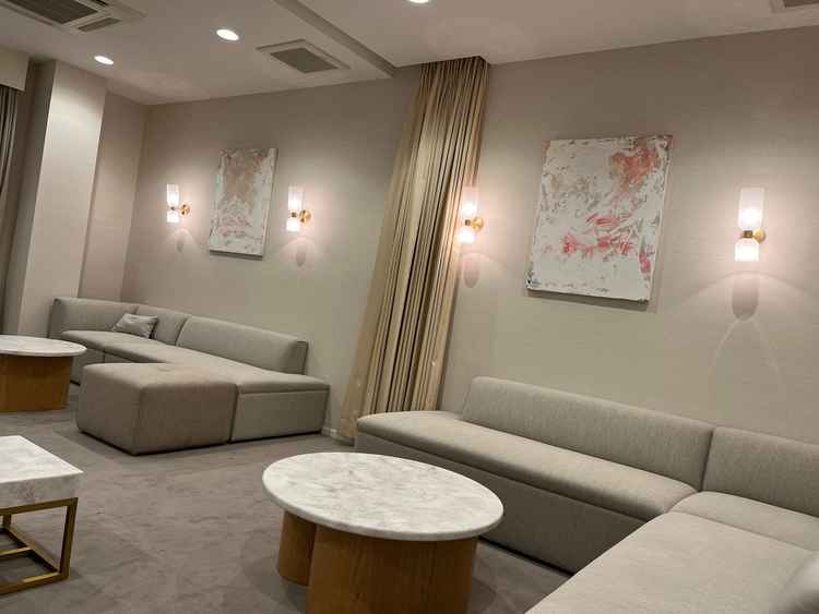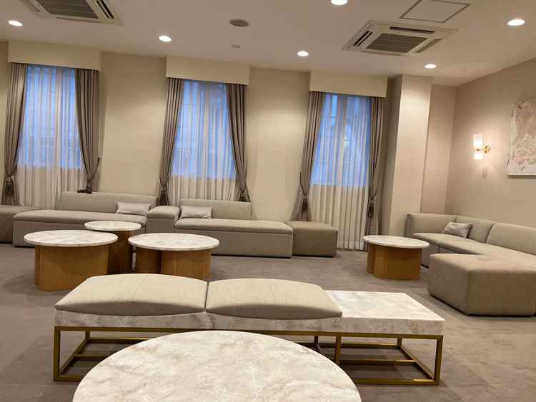 待ち合いスペースにあるソファーは着物の人も座れるように広い面積のデザインだったり、インテリアのこだわりも随所にありました。自宅にゲストを招くような邸宅ウエディングが希望の人にはおすすめです。
