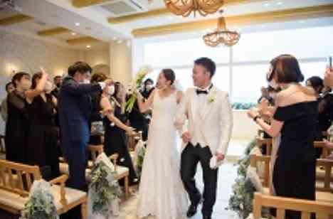 レンガの壁や、木製のシャンデリアなど、優しくナチュラルなチャペルで、おふたりらしい人前式が執り行われました。 おふたり手作りのリングピローは、アトリエの雰囲気にぴったり!オリジナルの誓いの言葉で、ゲストの皆様に誓い、結婚証明書を披露したおふたりは、大きな拍手と、フラワーシャワーを浴びながら笑顔で退場されました。おふたりらしい、笑顔溢れる明るい人前式となりました。