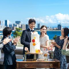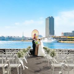 【感動!空・海・港を見渡すセレモニー】映画のワンシーンのような空と海のテラス挙式を体験!挙式時間は自由に設定可能!昼間の青空や夕日に誓う挙式も時間の移り変わりを変えていく空と海をご堪能下さい♪