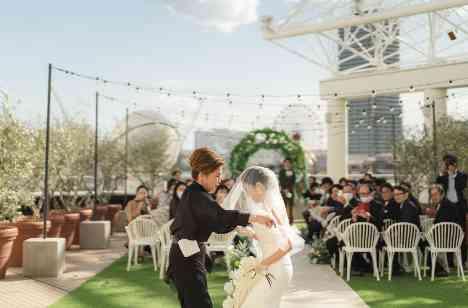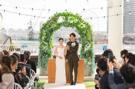 屋外の開放感のあるチャペルが理想だったので、晴れてほしいと心から願っていました。当日はしっかり晴れたので、理想以上のロケーションの中で挙式を行うことができて嬉しかったです。チャペルから見える景色はとても良く、自然の光に包まれて素敵な写真や映像が残せました。全てに満足しています!とお式後に仰られたおふたり。大満足の様子でいらっしゃいました。