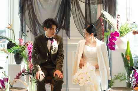ドレスは、シンプルなデザインのマーメイドです。前から見るとシンプル、ヘルシーで少しセクシーな海外のモデルさんのようなイメージなのがポイント。2着目は選んだブラックドレス。昔から黒のドレスを絶対に着ると決めていて、SNSで見つけて即決!装花は色味にこだわり「黒とピンクとグリーンを使ってください」とだけ伝えました。見た時は、想像以上の仕上がりで、可愛すぎて胸が高鳴りました!と笑顔でお話くださいました!