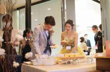 コロナ対策として、デザートビュッフェの演出はデザートを個包装で並べていきました。コロナ禍でもデザートビュッフェは可能です!!ゲストの皆様も笑顔で色とりどりのデザートを選んでいらっしゃいました!!そして、もちろん!このデザートの中にも『ゆず』味ございます!!お2人のためにパティシエが特別にお作りいたしました☆