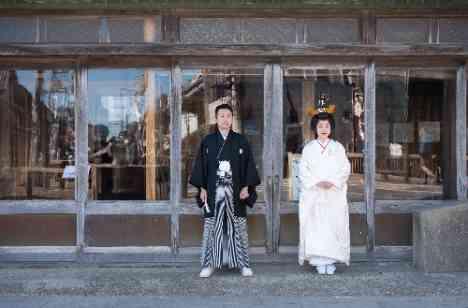 挙式は本格的な神前式が叶う香取神宮にて。紋付と白無垢姿で厳かに、大切なご家族に見守られながら夫婦としての誓いを結ばれました。挙式後には皆様とのお写真撮影もされながら和やかにお過ごしになられ、パーティ会場までのご移動は趣感じる「花嫁舟」で。ゲストの皆様やまちの皆様にも温かく見守られながら、特別な「さわら祝言」のひとときをお過ごしになりました。