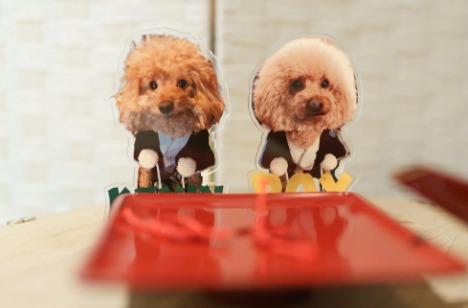 リングガールを務めた新郎様の姪御様はラジコンカーで登場。この日を心待ちにしていた新郎お母様からのサプライズ。さらに、愛犬のアクリルスタンドを手作りされ、「いつも近くに感じられるように」とおふたりの傍に飾られていたご披露宴。結婚式当日のカメラマンも、大の犬好き。ご披露宴の様々な瞬間に、2匹の愛犬のアクリルスタンドを登場させて、写真を撮影しました。