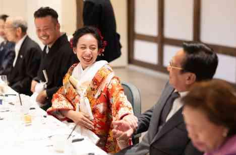 ご披露宴では鯛の塩釜開きを取り入れられたおふたり。おふたりの門出を祝い、幸せを願う日本の伝統的な儀式を、おふたりだけでなく、ご両家の親御様も木づちを持ち、一緒にご参加いただきました。 日本の文化を肌で感じながら、ご家族みんなで力を合わせて塩釜を開く。 その瞬間、笑顔があふれ、国を越えた家族の絆がより一層深まる、心温まるひとときとなりました。