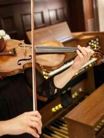 挙式の演奏では、オルガン演奏や聖歌隊が一般的に多い演出となっております。伏見百年婚をコンセプトにした挙式では、その演出に加えヴァイオリンやチェロといった弦楽器の演奏が加わります。弦には「絆」という意味も込められています。ぜひ、厳かで感動的な式を挙げてみてはいかがでしょうか。