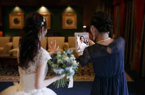 コロナ禍だった事もあり、残念ながら当日足を運んでいただけなかったご友人がいらっしゃいました。しかしリモートで披露宴にご参加いただき、お二人へのメッセージを送ってくれました。周りの人を大切にする新婦の人柄が垣間見えるシーンでした。ご友人も新婦の晴れ姿を見ることができ、思い出に残る1日となったのではないでしょうか。