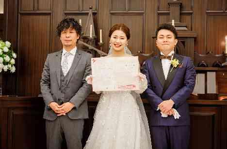 ご兄弟に承認となってもらって結婚証明書を整え、挙式をスタート。 ご両家同士の結びつきを強めるキャンドルセレモニーはそれぞれの親族にご参加いただくことで、より想いを深めました。入場時のベールダウンや指輪交換時のリングボーイセレモニー等、ご家族・ご親族全員が参加し、友人たちがその証人に。絆深まる挙式となりました。