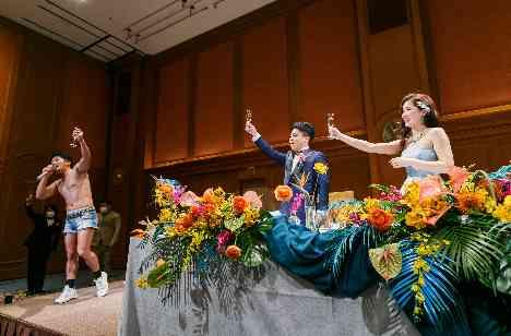 コロナの影響で当初の予定より約1年のインターバルを余儀なくされてしまったご両家様の結婚式。 「延期をしても絶対に友人は呼びたい!」という決意のもと準備を進めてこられました。 「大変な状況下でも出席してくれた皆様に楽しんでいただきたい!」と名古屋観光ホテルならではの演出に参加型で楽しんでいただけるよう構成をかんがえられました。