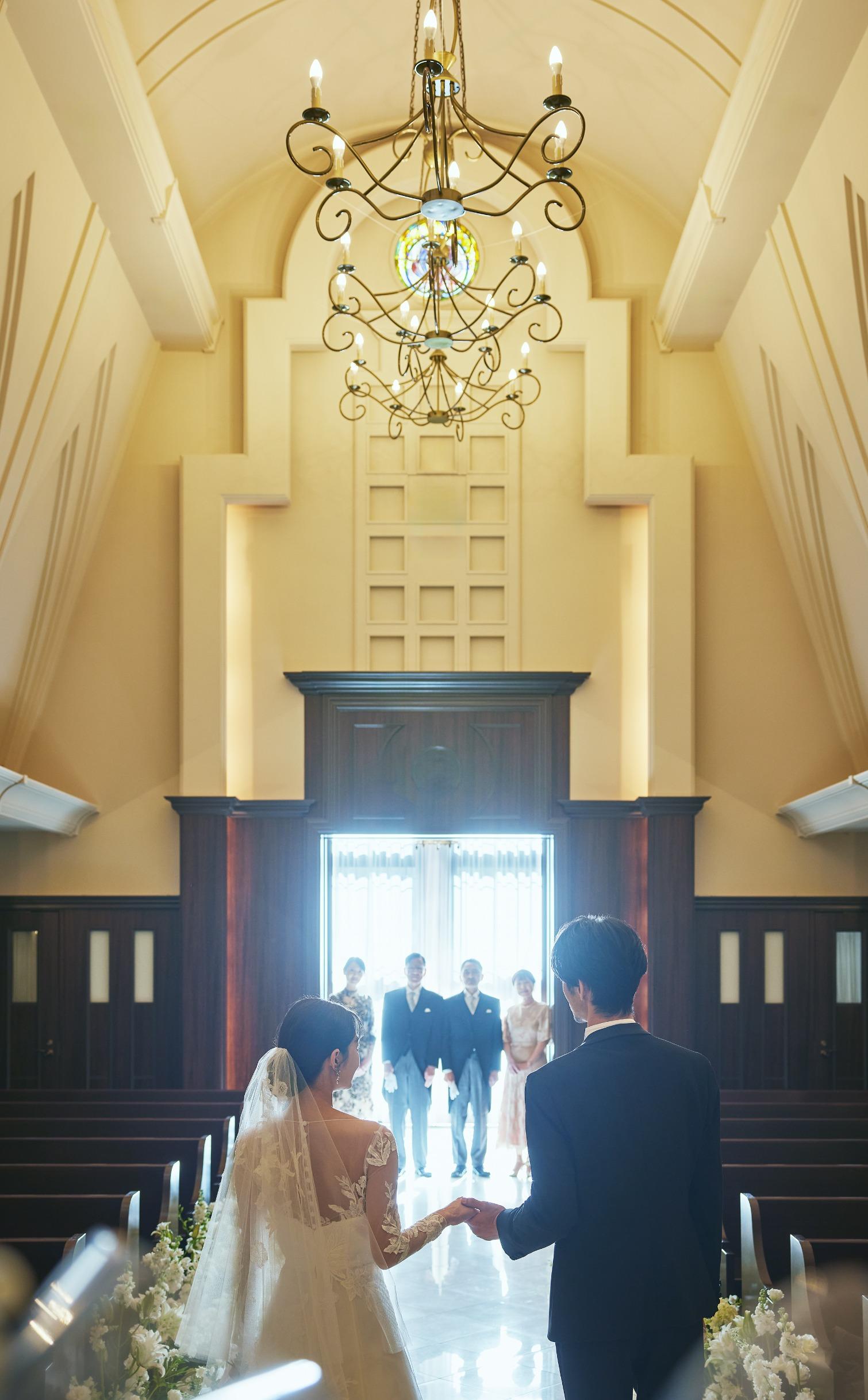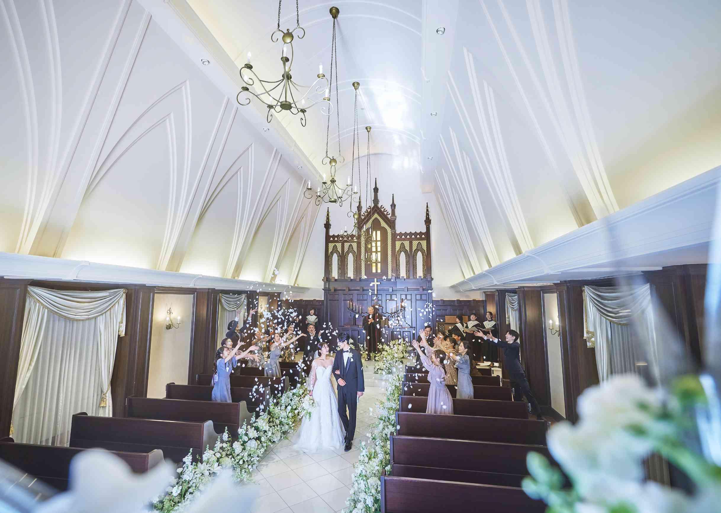 古き良き西欧の荘厳を再現した神聖な空間。挙式後もご結婚の年祝い、記念日、誕生のお祝いなど祝福の瞬間を迎えられます。天井高9M、収容人数は最大100名。【1件目の来館なら挙式料が最大10万円OFFに】