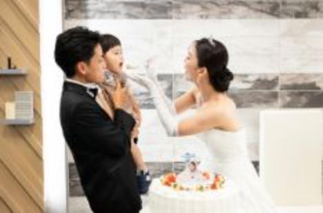 新郎新婦の幸せな笑顔あふれるケーキ入刀&ファーストバイトのシーン。そんな特別な瞬間に、さらに大好きなママから“愛情いっぱい”のケーキをひと口プレゼント!心温まる演出が加わりました。ママの優しさが詰まったひと口を嬉しそうに頬張る姿に、会場は笑顔と感動に包まれ、家族の絆を感じるほっこりとした時間が流れます。