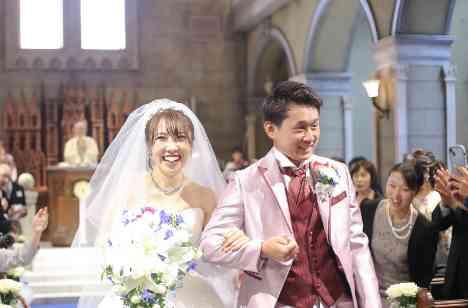 目の前に広がるステンドグラスの大聖堂。 本物のステンドグラスの中、大切なご家族やご友人、職場の皆様に見守られ、本物の愛を誓われるおふたり。 バージンロードは人生を意味するもの。 お母様から最後の身支度をしていただき、お父様と一歩一歩歩み、その先で大切な新郎様と出会う。 今後どんな時も忘れられることのない1日をお過ごしいただきました。